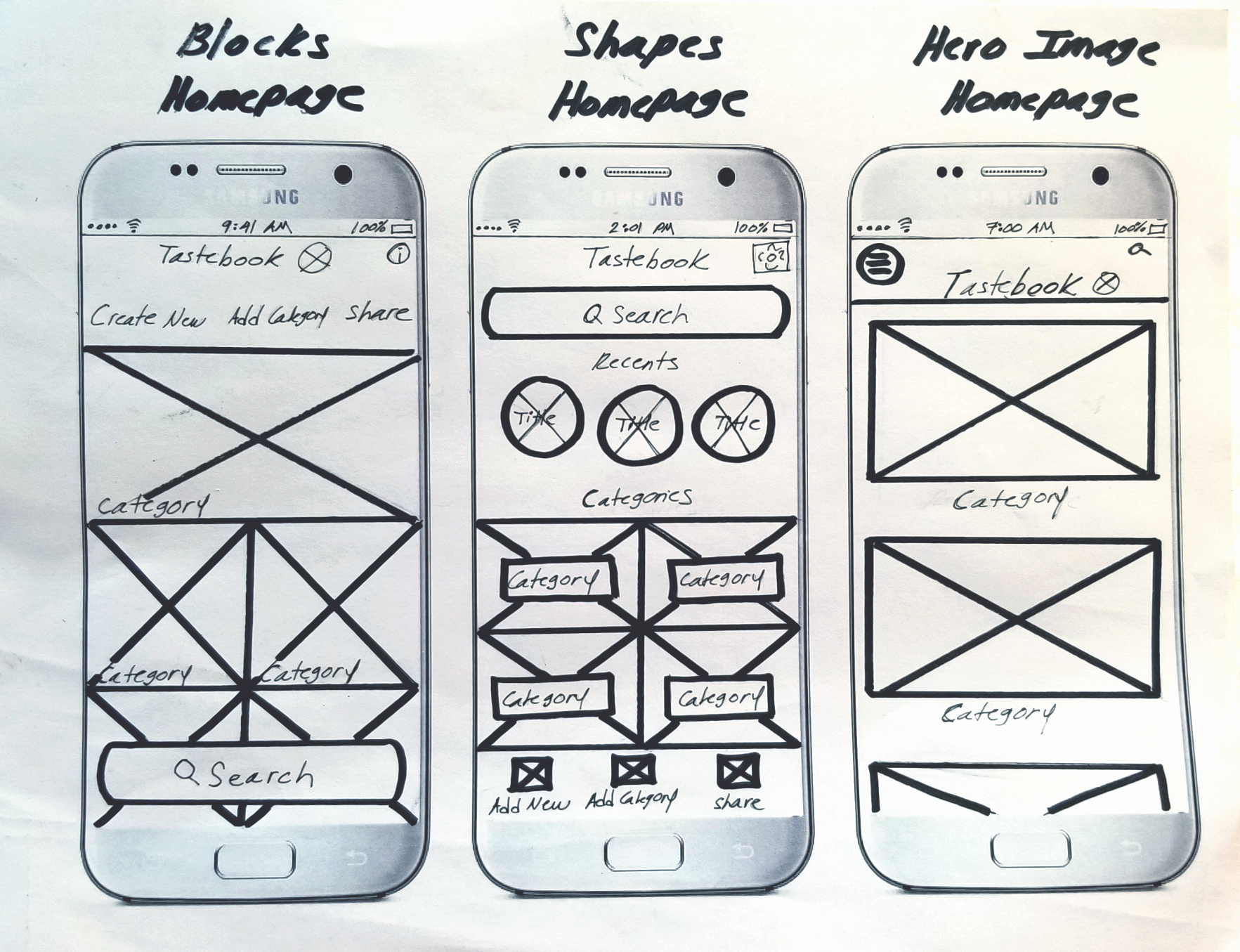 For the first round of mocks, I gave Tastebook a fun and energizing feel. I chose bright colors and hand-written style font.